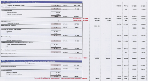 D'autres chiffres, enfin, sautent aux yeux: les «frais de réception et de représentation du Président» ont